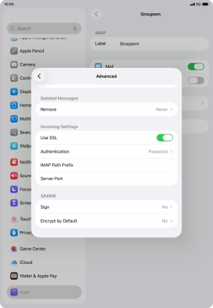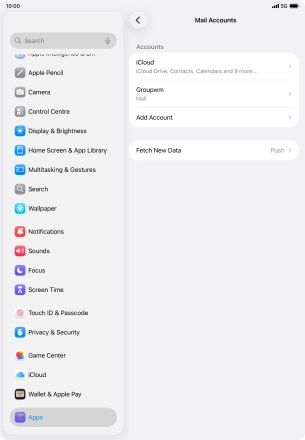 Press the required email account and follow the instructions on the screen to select settings for the specific account.