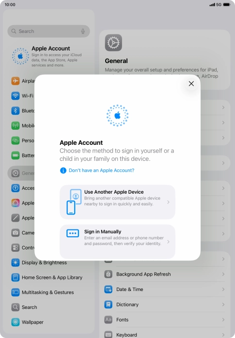 Press Apple Account.