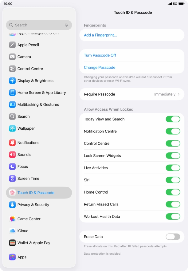 Press Touch ID & Passcode.