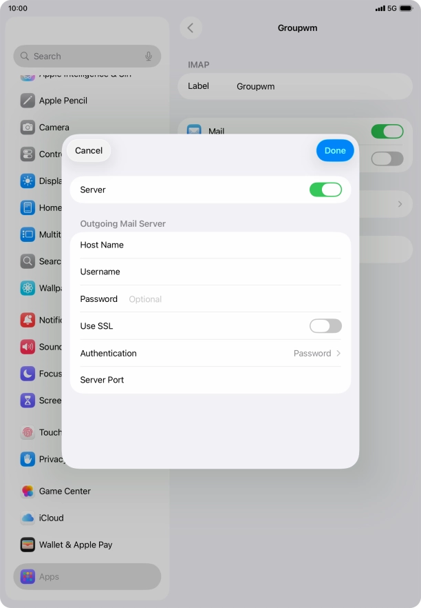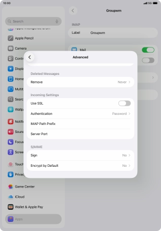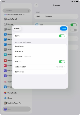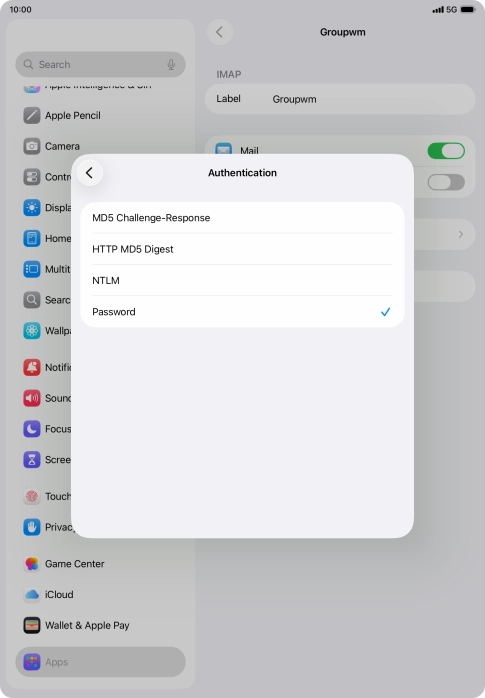 Press Password and key in the password for your email account.