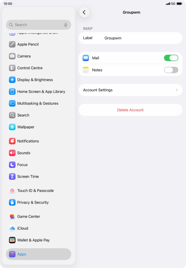 Press the name of the email account you've just set up.