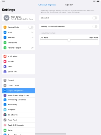 Select Night Shift settings on your Apple iPad Air 13 (2024) iPadOS 17