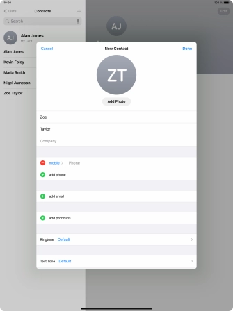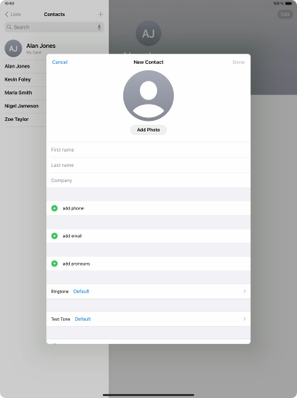 Create contact on your Apple iPad Air 13 (2024) iPadOS 17