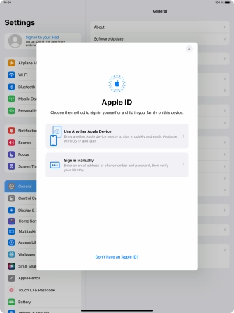 If you don t have an Apple ID, press Forgot password or don't have an Apple ID? and follow the instructions on the screen to create an Apple ID.