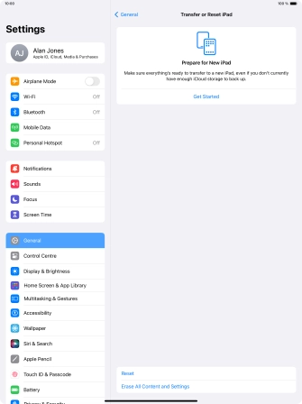 Press Get Started and follow the instructions on the screen to select the required settings and back up the tablet memory to iCloud. Once you've received your new iPad, you'll be able to restore the content of the iCloud backup.