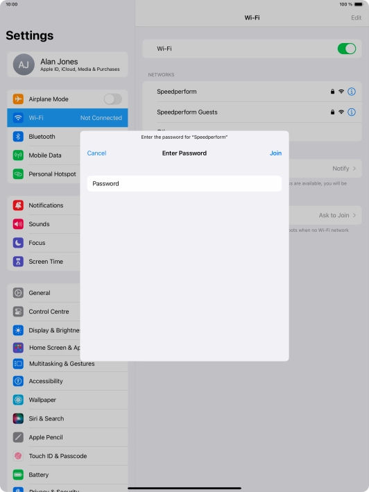 Press the required Wi-Fi network and key in the password for the Wi-Fi network.