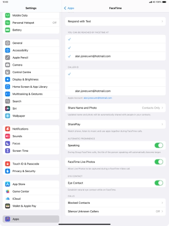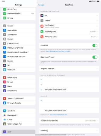 Press the required setting below "YOU CAN BE REACHED BY FACETIME AT".