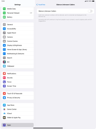 Press the indicator next to "Silence Unknown Callers" to turn the function on or off.