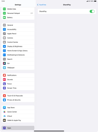 Press the indicator next to "SharePlay" to turn the function on or off.
