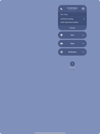 You can activate the same focus mode on all your devices running iOS 15 or later. To turn on the function, you need to activate your Apple ID on your tablet.