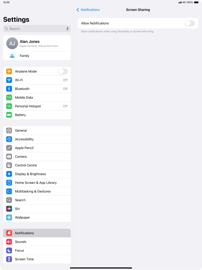 You can turn display of notifications when using SharePlay or Screen Mirroring on or off.