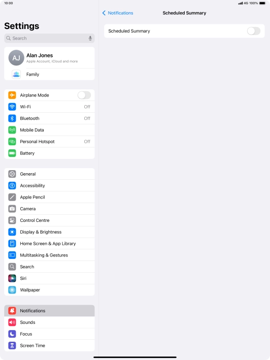 Press the indicator next to "Scheduled Summary" to turn on the function and follow the instructions on the screen to set the notification summary.