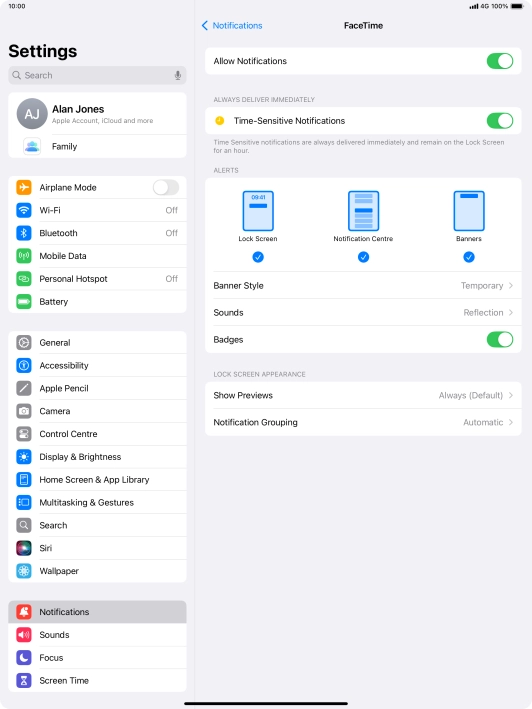 Press the indicator next to "Time-Sensitive Notifications" to turn the function on or off.