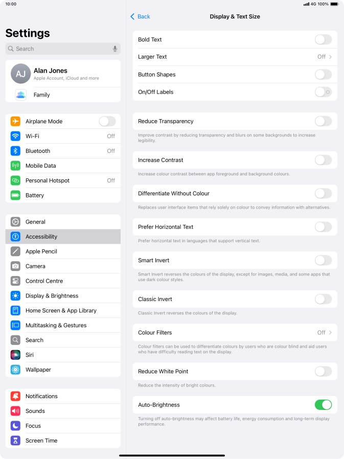 Press the indicator next to "Auto-Brightness" to turn automatic brightness on or off.