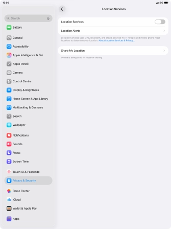 Turn GPS on your Apple iPad Air 13 (2024) iPadOS 26 on or off
