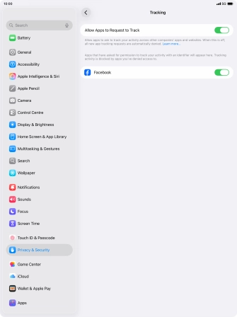 Turn tracking request for downloaded apps on your Apple iPad Air 13 (2024) iPadOS 26 on or off