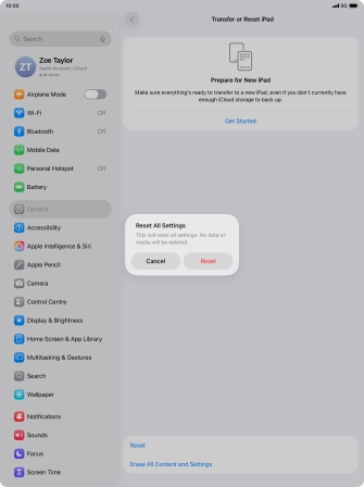 Press Reset. Wait a moment while the factory default settings are restored. Follow the instructions on the screen to set up your tablet and prepare it for use.