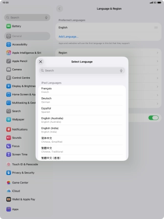Select language on your Apple iPad Air 13 (2024) iPadOS 26