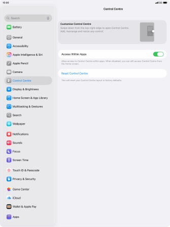 Select settings for Control Centre on your Apple iPad Air 13 (2024) iPadOS 26