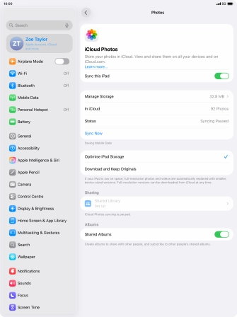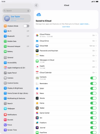 Synchronise the contents of your Apple iPad Air 13 (2024) iPadOS 26 using iCloud
