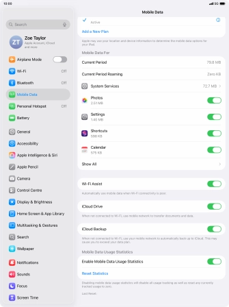 Press the indicator next to "Wi-Fi Assist" to turn the function on or off.