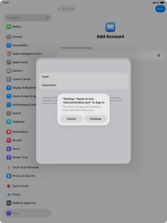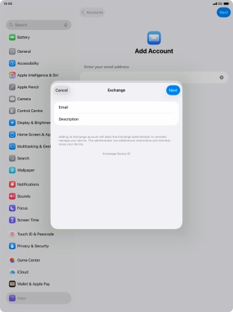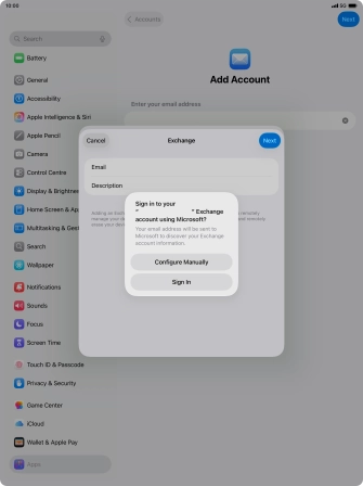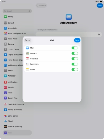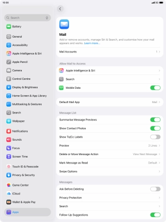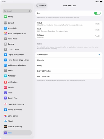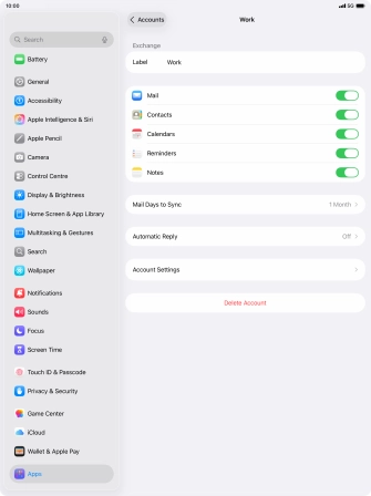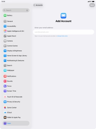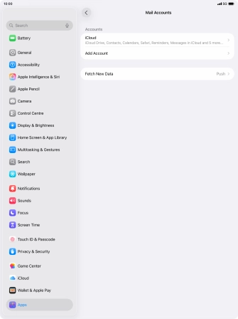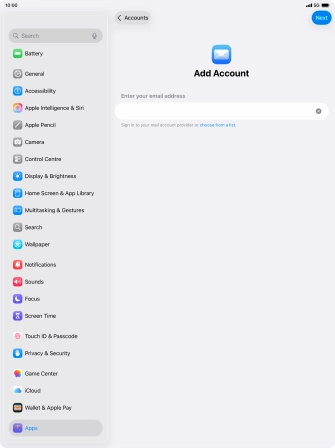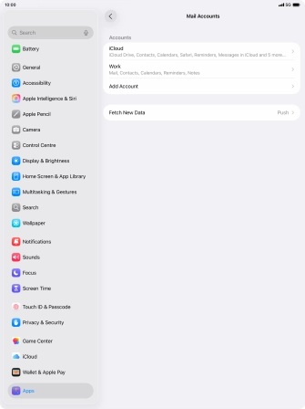 Press the required email account and follow the instructions on the screen to select settings for the specific account.