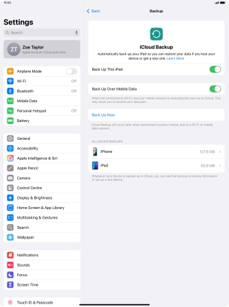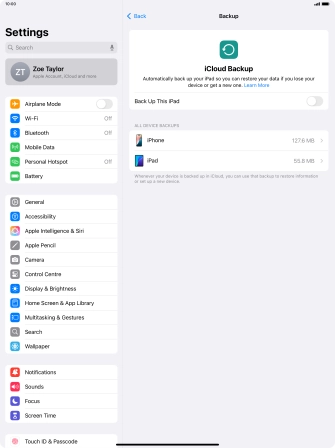 Back up the memory on your Apple iPad Air 13 (M3) (2025) iPadOS 18 to iCloud