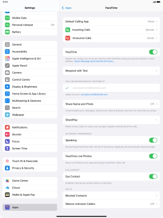 Select FaceTime settings on your Apple iPad Air 13 (M3) (2025) iPadOS 18