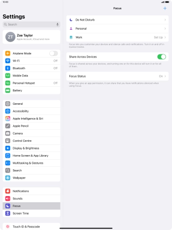 Use Do Not Disturb on your Apple iPad Air 13 (M3) (2025) iPadOS 18