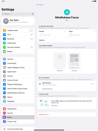 Use Focus on your Apple iPad Air 13 (M3) (2025) iPadOS 18