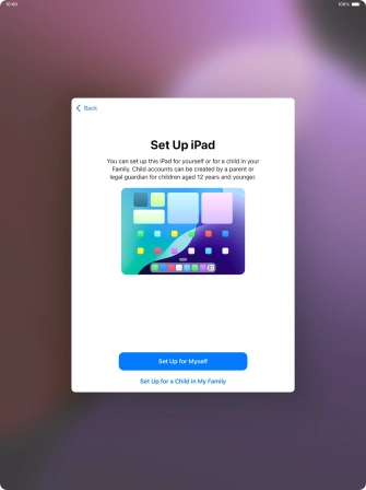 If your tablet will be used by a child below the age of 13, follow the instructions on the screen to set up an Apple ID for the child.