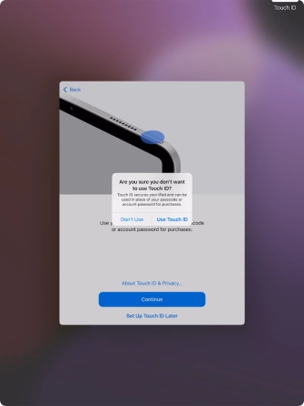 Follow the instructions on the screen to turn on use of Touch ID or press Set Up Touch ID Later.