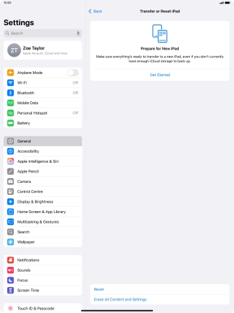 Press Get Started and follow the instructions on the screen to select the required settings and back up the tablet memory to iCloud. Once you've received your new iPad, you'll be able to restore the content of the iCloud backup.