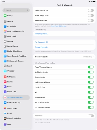 Turn use of lock code on your Apple iPad Air 13 (M3) (2025) iPadOS 26 on or off