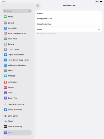 Turn call announcement on your Apple iPad Air 13 (M3) (2025) iPadOS 26 on or off