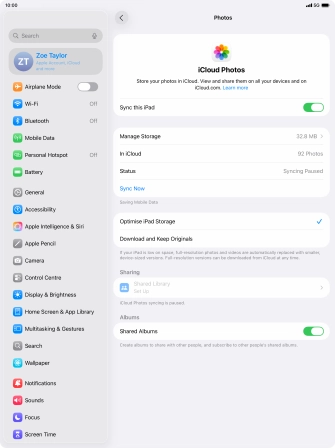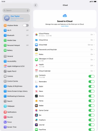 Synchronise the contents of your Apple iPad Air 13 (M3) (2025) iPadOS 26 using iCloud