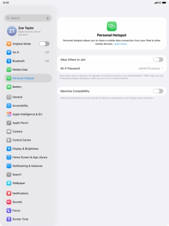 Use your Apple iPad Air 13 (M3) (2025) iPadOS 26 as a personal hotspot