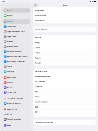 View EID number of your Apple iPad Air 13 (M3) (2025) iPadOS 26