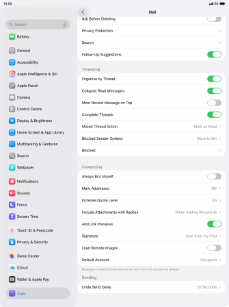 Select default email account on your Apple iPad Air 13 (M3) (2025) iPadOS 26