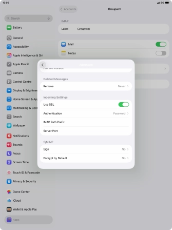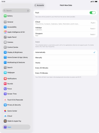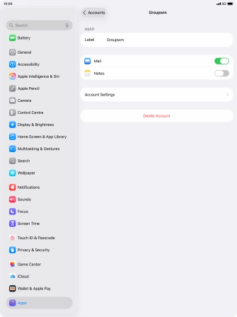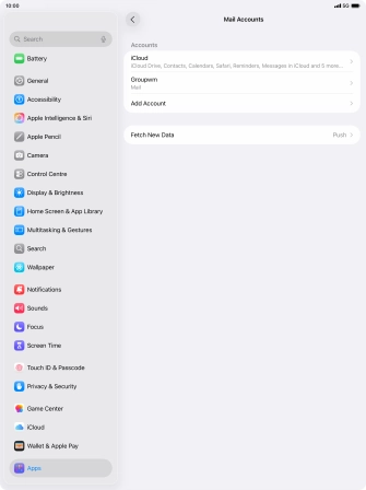 Press the required email account and follow the instructions on the screen to select settings for the specific account.