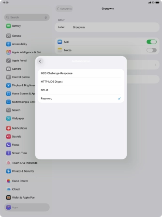 Press Password and key in the password for your email account.