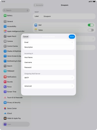 Press Username and key in the username for your email account.
