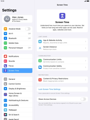 Press Screen Time and optionally select the required member of your family group.