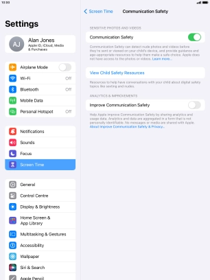 Press the indicator next to "Communication Safety" to turn the function on or off.