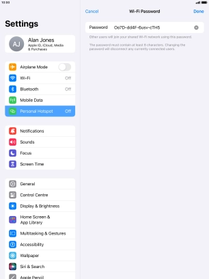 Key in the password for the personal hotspot and establish the connection.