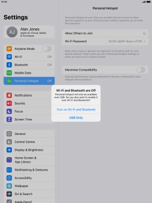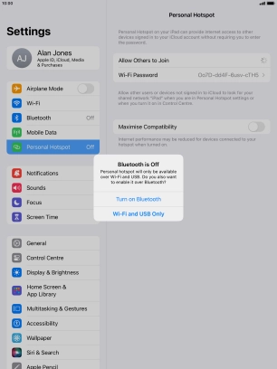 Press Personal Hotspot.