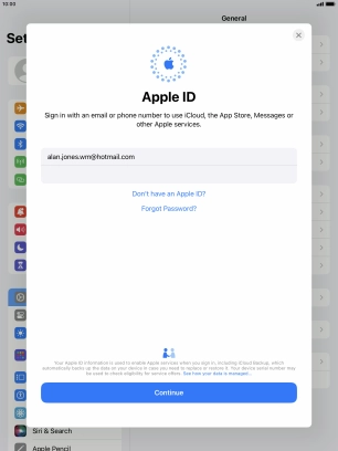 If you don t have an Apple ID, press Don't have an Apple ID? and follow the instructions on the screen to create an Apple ID.