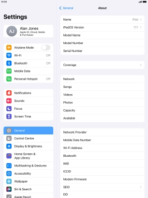 View EID number of your Apple iPad Air (2019) iPadOS 17