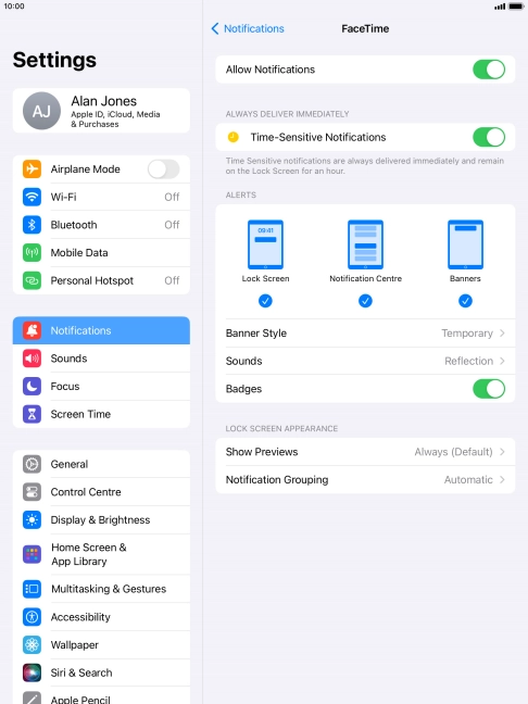 Press the indicator next to "Time-Sensitive Notifications" to turn the function on or off.