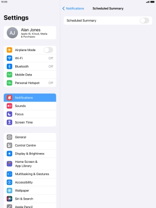 Press the indicator next to "Scheduled Summary" to turn on the function and follow the instructions on the screen to set the notification summary.